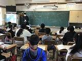 管楽器の鑑賞の授業でした。ホルンとトランペットの音色の違いや楽器の特徴を実際に楽器に触れ,重さや形状を確認しながら学びを深めました。間近で見たり初めて触ったりと、発見が多かったようです。