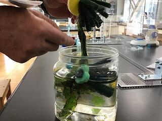 理科室をのぞくと,5・6年生の実験に使うと思われる教材を発見!日々、担任と打ち合わせを行い,各クラスの実験時間に合わせて準備をしています。特に生物教材は、手間と時間と愛情をかけるため,理科教育支援員の先生の存在がなければ成り立ちません。