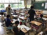 3年生の教室では外国語活動中!外国語授業支援員と担任が一緒に指導にあたります。How many? One, two...と数を数えたり,いくつあるか聞き合ったり,数字ビンゴをしたり,とても楽しそうに学ぶ姿がありました。