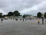 曇りがちの青空タイムでしたが,ボール遊び可の日なので,外はにぎわっていました。密を避けるために区画整備された中で上手に遊んでいます。