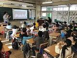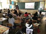 6年生の教室では,各自でテーマを選び,ノートにまとめた事柄を全体に向けて発表する授業をしていました。地球温暖化について,温室効果ガスについて,適切な洗剤量についてなど,地球環境問題に直結したテーマを設定していました。発表後には質疑応答の時間もあり,みんなで話題を共有して深めている様子が素敵でした。次の発表者が感想を伝えている姿も微笑ましかったです。