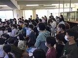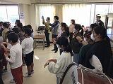 ふれあいタイム【手話クラブコンサート】毎月のクラブ活動で,一生懸命練習してきた成果を披露するコンサートが行われました。数日前から放送やポスターで呼びかけ,どのくらい観客が集まるのか心配でしたが,立ち見も出るほどの大盛況!中には,クラブ員の手話を見て真似る子もいました。口ずさみながら,みんなで手話を楽しむ光景は,とても素敵でした。「これからも耳の聞こえない人とおしゃべりをするために,楽しく手話を学んでいきたいです。」という言葉で閉じられ,大きな拍手が起こりました。