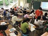 5年生【理科】アサガオの花粉を電子顕微鏡で観察しています。花粉の形状や数に驚きの声が挙がっていました。理科授業支援員の先生が,スライドガラスやピンセット,アサガオなどのセットを準備してくれました。