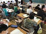 1年生【国語】書写の時間を使って水書に取り組みました。鉛筆では分かりにくいですが,筆を扱うことで文字を書く際の力の入れ具合,抜き具合を実感できたようです。正しく,美しく,丁寧に書くことの礎になるような経験となっています。