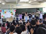 ふれあいタイム【手話クラブコンサート】毎月のクラブ活動で,一生懸命練習してきた成果を披露するコンサートが行われました。数日前から放送やポスターで呼びかけ,どのくらい観客が集まるのか心配でしたが,立ち見も出るほどの大盛況!中には,クラブ員の手話を見て真似る子もいました。口ずさみながら,みんなで手話を楽しむ光景は,とても素敵でした。「これからも耳の聞こえない人とおしゃべりをするために,楽しく手話を学んでいきたいです。」という言葉で閉じられ,大きな拍手が起こりました。