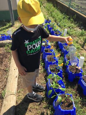 生活科で野菜を育ています。大きく育つように水をあげました。早く大きくなることを楽しみにしています。