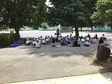 熱中症に気をつけ,木陰を選んだり,水分補給をしたりしながら楽器演奏の学習を進めています。合奏や合唱の時間をたっぷりとり,たくさん音楽に触れる時間があります。その裏には,ホワイトボード・CDデッキ・スピーカー・電源コード等を毎日,屋外へ出し入れする音楽専科の努力があるのです…!確かな学びの裏には,人知れず動いている方がいるのですね。