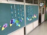 ある学級では,廊下の掲示物をクラスみんなで作成し,掲示していました。とてもかわいらしい作品で,心が温かくなりますね。雨の多い季節に入りますが,ここを通ると気持ちが晴れそうです!