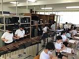 音楽室では,通常に戻った教育活動が展開されていました。楽器を用いて合奏の練習中。どのパートも一生懸命練習に取り組んでいました。みんなで合わせることの楽しさや,音の重なりを感じながら演奏することで,心豊かな西原っ子の育成につながっています。