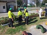 50周年記念式典に向けて,航空写真のデザインやキャラクターの公募,スローガン決めなど,さまざまなところで動きだしました。今日は,航空写真撮影を前に,校庭の花壇の整備をするために,強力な助っ人がたくさん来校してくれました。県立流山高等学校 園芸課の生徒さんと先生方です。上空から写した際に美しく見えるようにレイアウトし,花壇に花を移植してくださいました。ご多用の中,本当にありがとうございました。写真撮影の日が楽しみです。