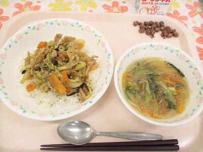 一覧へ ホイコーロー丼 日時 2023年09月11日(月) 公開対象 給食こんだて 詳細 【今日の献立】 ホイコーロー丼 春雨スープ ココア大豆 牛乳 作成者 西原小学校管理者 更新日時 2023-09-15 17:57:33