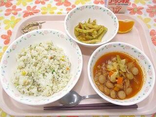 一覧へ とり肉と野菜のピラフ フライドポテト 日時 2026年02月27日(金) 公開対象 給食こんだて 詳細 【きょうの献立】 とり肉と野菜のピラフ ミネストローネ フライドポテト <6年生リクエスト> しらぬい(かんきつ果物) 小魚 牛乳 作成者 西原小学校管理者 更新日時 2026-02-27 15:44:08