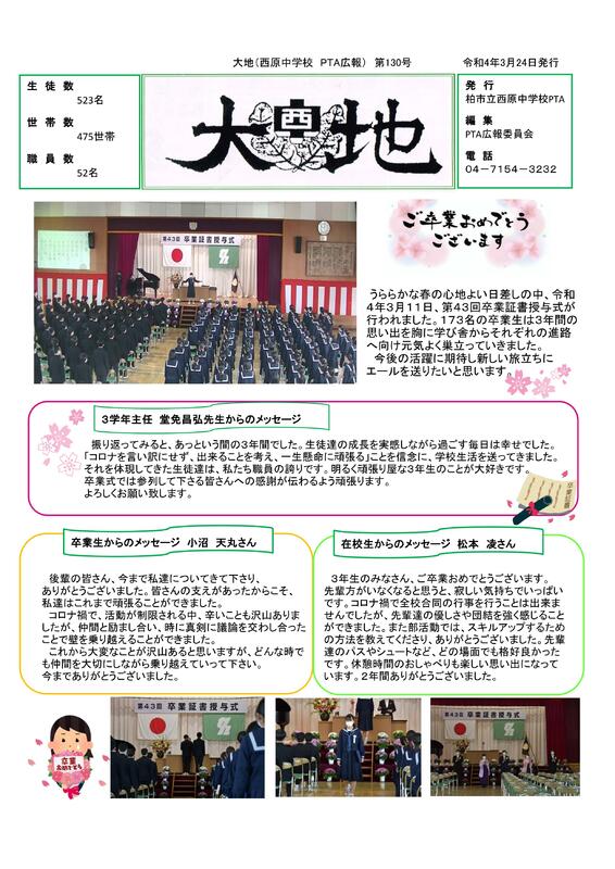 令和三年度お知らせ 全ての記事 全ての記事 カテゴリ 今日の出来事 連絡事項 報告事項 アーカイブ 2026年1月 (0) 2025年12月 (0) 2025年11月 (0) 2025年10月 (0) 2025年9月 (0) 2025年8月 (0) 2025年7月 (0) 2025年6月 (0) 2025年5月 (0) 2025年4月 (0) 2025年3月 (0) 2025年2月 (0) 2025年1月 (0) 2024年12月 (0) 2024年11月 (0) 2024年10月 (0) 2024年9月 (0) 2024年8月 (0) 2024年7月 (0) 2024年6月 (0) 2024年5月 (0) 2024年4月 (0) 2024年3月 (0) 2024年2月 (0) 2024年1月 (0) 2023年12月 (0) 2023年11月 (0) 2023年10月 (0) 2023年9月 (0) 2023年8月 (0) 2023年7月 (0) 2023年6月 (0) 2023年5月 (0) 2023年4月 (0) 2023年3月 (0) 2023年2月 (0) 2023年1月 (0) 2022年12月 (0) 2022年11月 (0) 2022年10月 (0) 2022年9月 (0) 2022年8月 (0) 2022年7月 (0) 2022年6月 (0) 2022年5月 (0) 2022年4月 (0) 2022年3月 (6) 2022年2月 (3) 2022年1月 (2) 2021年12月 (6) 2021年11月 (3) 2021年10月 (3) 2021年9月 (3) 2021年8月 (2) 2021年7月 (2) 2021年6月 (1) 2021年5月 (2) 2021年4月 (7) 2021年3月 (1) 5件 1件 5件 10件 20件 50件 100件 令和3年度 学校給食収支報告 投稿日時 : 2022/03/29 西原中学校職員室 R3学校給食収支報告.pdf こども食堂「きずな」3月26日 投稿日時 : 2022/03/24 西原中学校職員室 「大地」(西原中学校 PTA広報)第130号 投稿日時 : 2022/03/24 西原中学校職員室 大地2022年3月130号1.pdf 三学期末保護者会 校長挨拶 投稿日時 : 2022/03/18 西原中学校職員室 令和3年度学校評価 投稿日時 : 2022/03/11 西原中学校職員室 R3保護者様 学校評価.xlsx R3生徒 学校評価.xlsx R3教職員 学校評価.xlsx 123456789 »