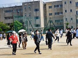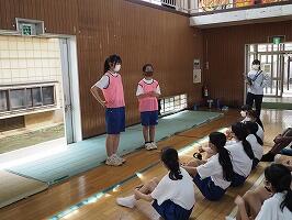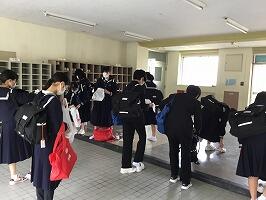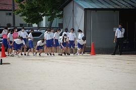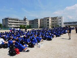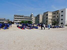 本校では,震度7の地震を想定しての避難訓練とともに実施しました。1学期始めにも避難訓練を実施しており,前回よりもスムーズに避難することができました。気温が上がり,汗がにじむ中でしたが,緊張感のある雰囲気でした。