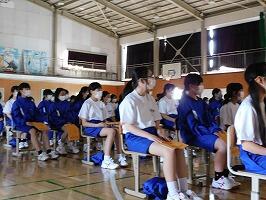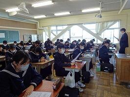 1年生は冬休みの過ごし方を中心に,2年生は来年に控えた修学旅行について,3年生は進路を中心にこの冬休みを頑張るよう,話がありました。