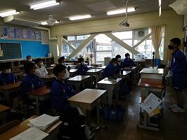 帰りの会後,登下校集会がありました。其田先生と一緒に,整美委員が中心となって作成した登下校ガイダンス動画はとてもわかりやすく,安全意識が高まりました。