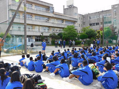 2学期の自転車通学者集会が帰りの会後、体育館で実施されました。自転車点検は雨天のため明日に延期となりました。