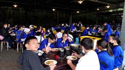 みな、笑顔で調理し、笑顔で会話をしながら食べている姿が、とても微笑ましく感じる家庭科の時間でした。わたくしもお誘い頂き、美味しい豚汁を頂きました。とても美味しかったです。 「ごちそうさまでした。」