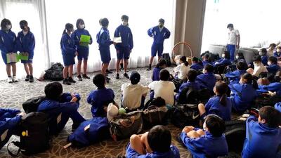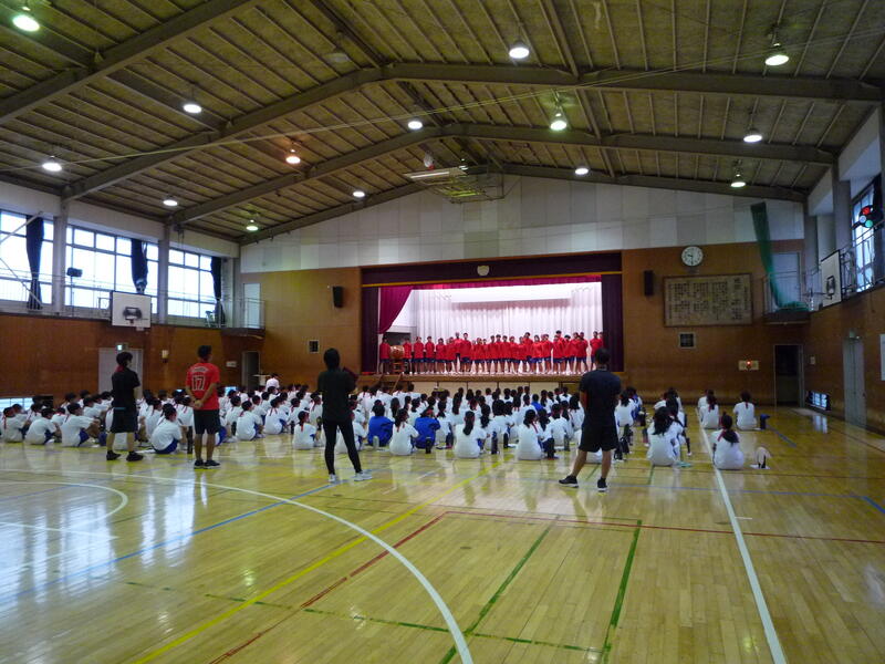 ちなみに質問は①生徒は何人いますか?②どんな教科がありますか?③部活はいくつありますか?④お勉強は難しいですか?⑤体育館は何メートルですか?⑥遊具はどれくらいありますか?⑦教室はいくつありますか?などなどでした。
