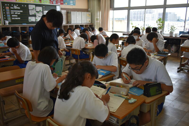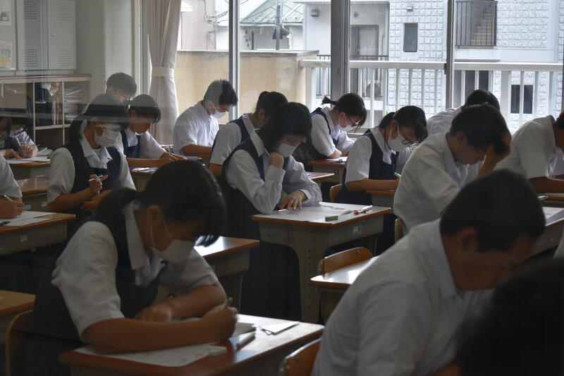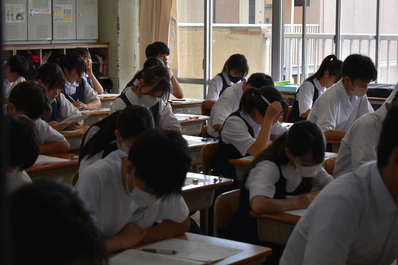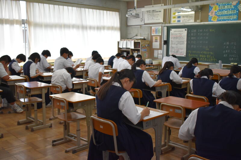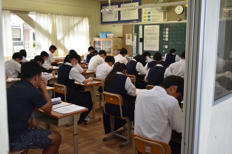 夏休みの成果を確認するための、「確認テスト」が実施されました。全員が真剣な表情で取り組んでいました。