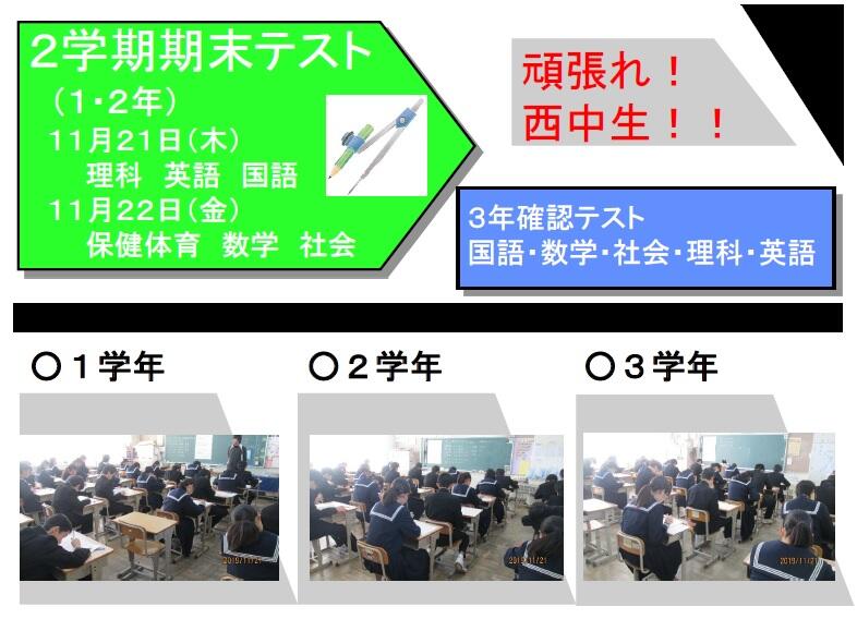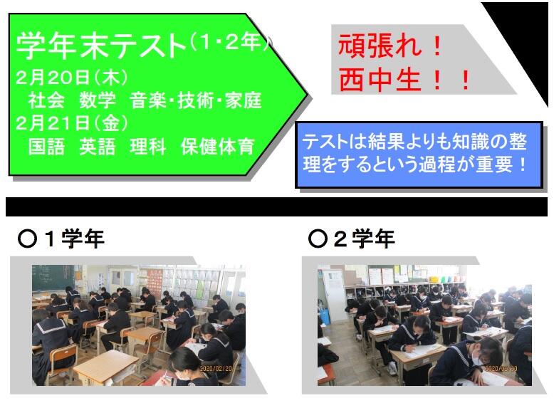 1・2学年は定期テストとしての期末テスト、3学年は高校入試に向けての確認テストを行います。