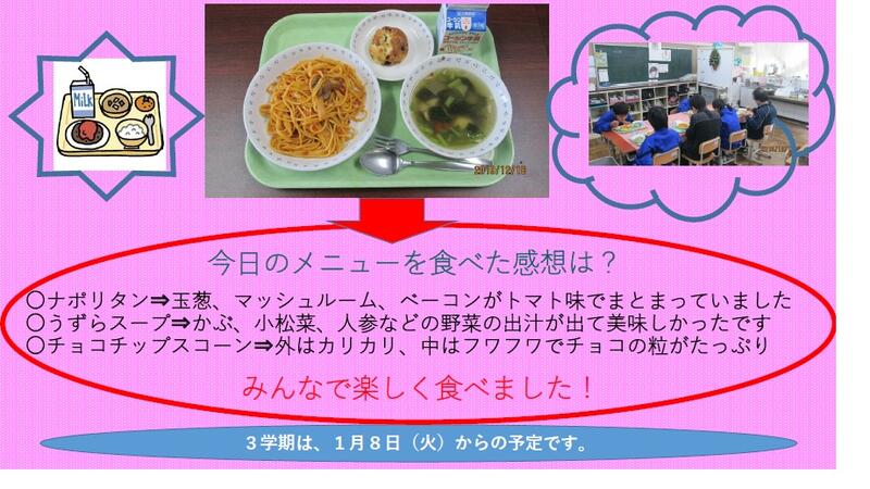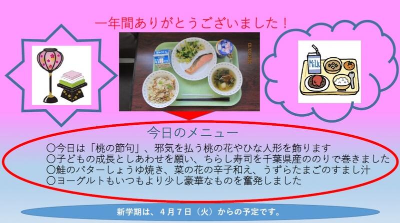 明日からの臨時休業で、今年度最後の給食になりました。特に3年生は、中学校生活で最後となります。