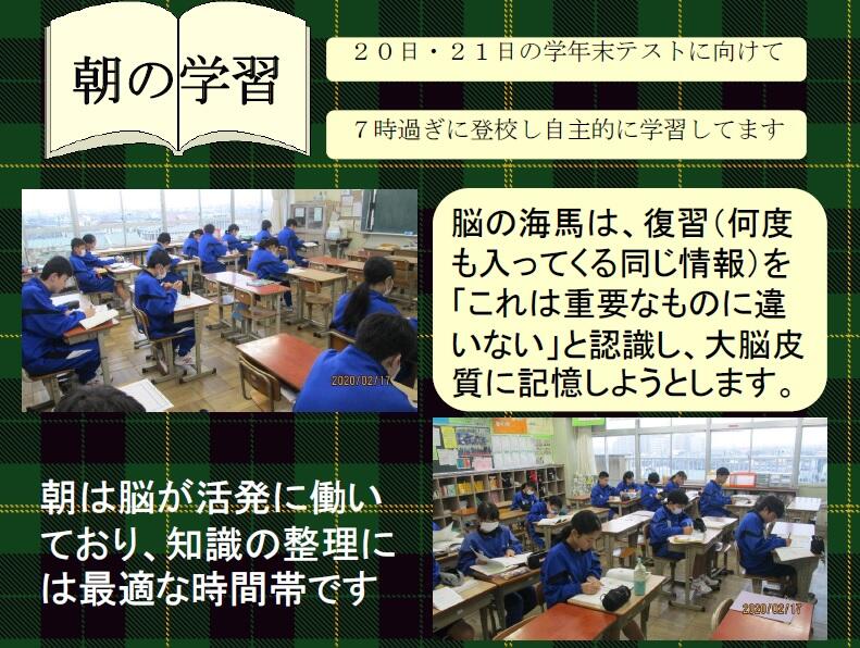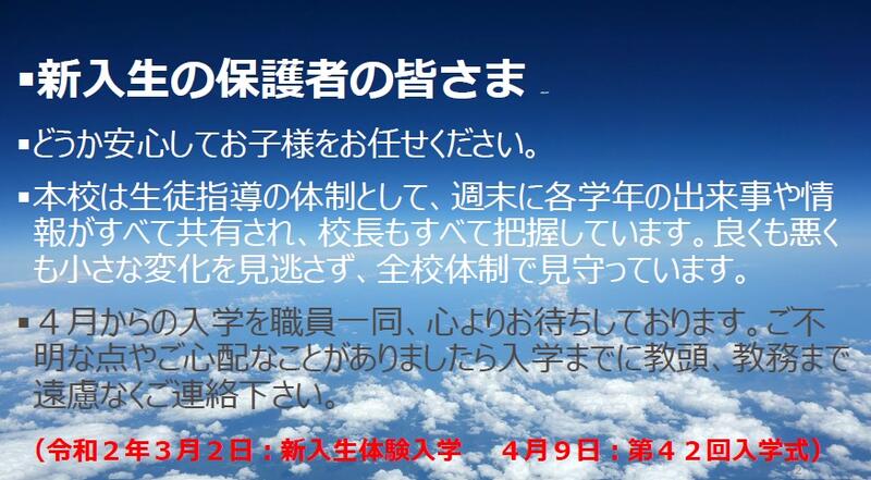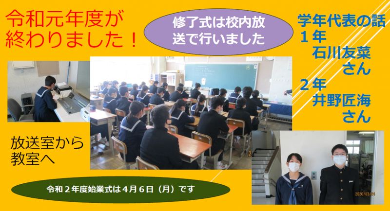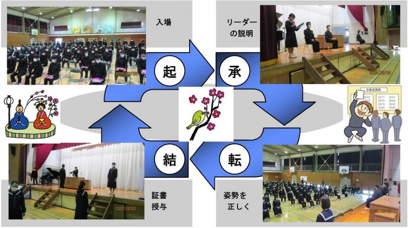その後、生徒指導主任から3月の学校行事最大の卒業式、安全主任から地震等の防災についての話がありました。