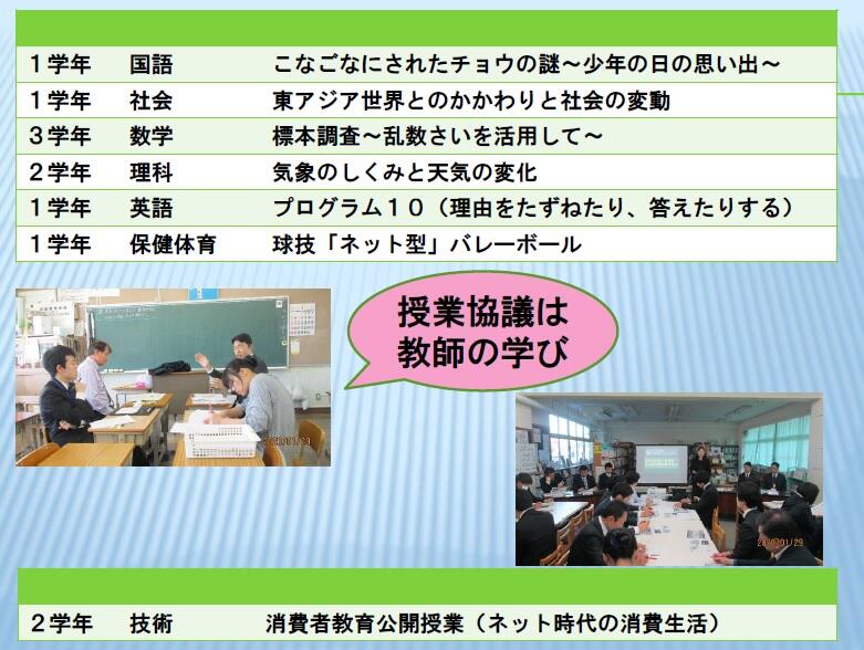 5時間目に授業を行い、その後生徒の下校後、研修を行いました