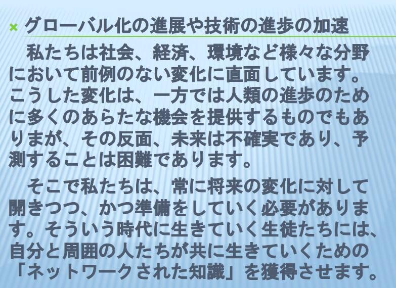 あたらめて言ううまでもなく、学校のメインは「授業」です。その授業を現状のままでなく、これからの時代を生きていく生徒たちに身に付けさせたい資質能力を明確にしたものに、常にバージョンアップしていかねばなりません。そのために外部から講師招聘し、お互いの授業をブラッシュアップしていくのが、授業研究協議会です。