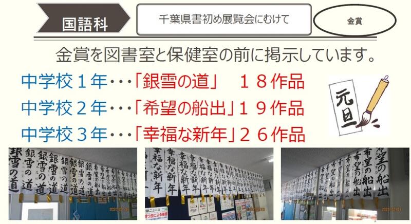 卒業式で体育館に掲示し、終了後保護者の方にお持ち帰りしてもうらおうと計画していましたが、叶いませんでしたので、紹介します。ただしクラス順ではなく、ランダムに並べましたので、ご了承ください。