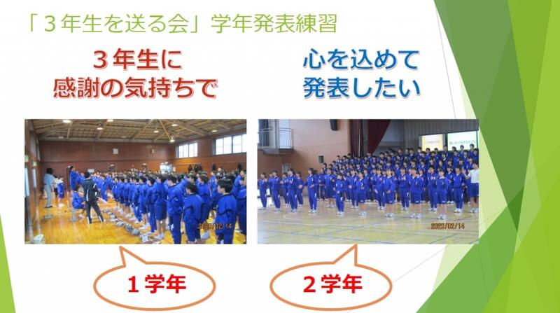 来月4日の3年生を送る会に向けて、在校生は武道場と体育館に分かれて、学年発表の練習を重ねています。