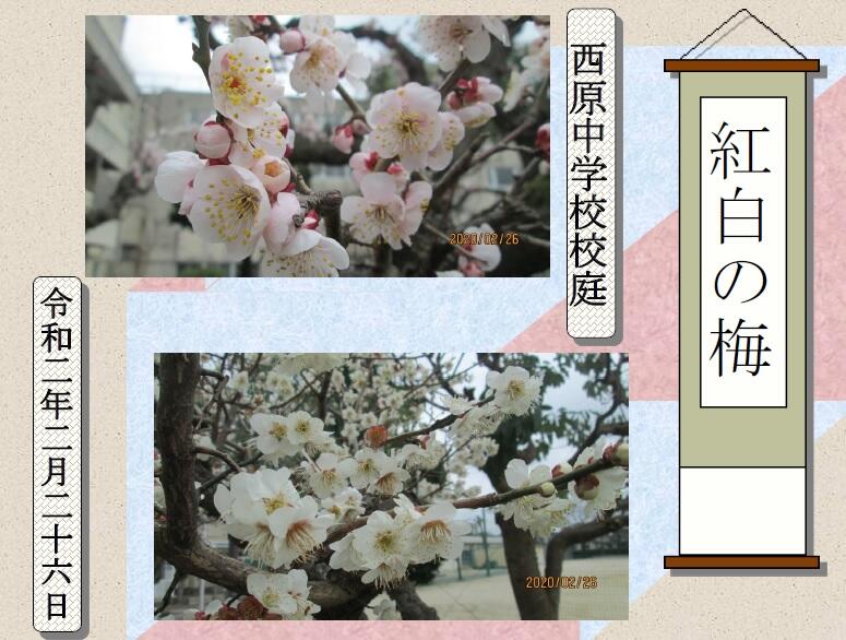 西原中には、校舎とグラウンドの間に、校庭(松や梅の木々が植えてある)が創立以来あります。他の中学校ではあまりみられません。この一見「無駄なスペース」と思える空間が実は大切ではないかと思っています。生徒も言葉にはしませんが、そこを通る際はなんとなくホッとしている様子が見られます。