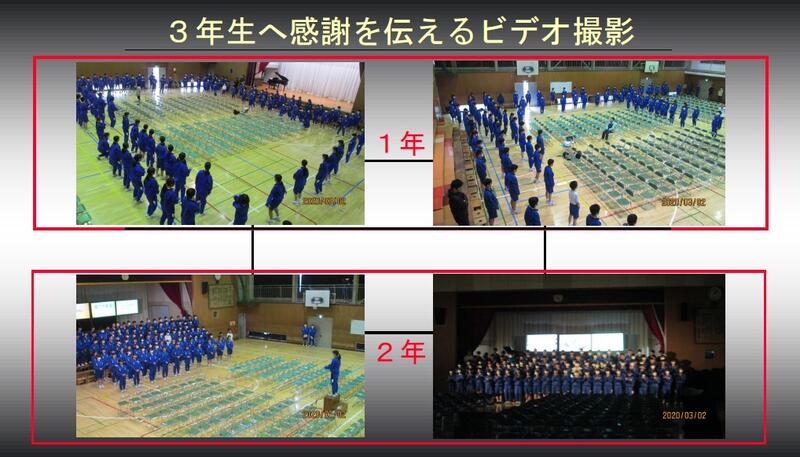 新型コロナウィルス感染症対策で、4日に予定していた「3年生を送る会」が中止となり、明日は3年生は卒業式練習だけになりました。そこで下級生が心をこめた発表をビデオレターとして観てもらうことにしました。