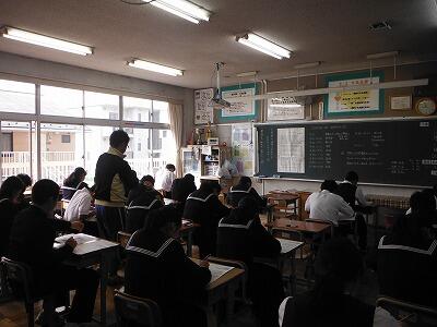 9月26日(火)1校時は全学年とも道徳の時間です。一年生は「心を磨く」というテーマで一企業人の生きざまを通して学習していました。2年生は「合唱コンクールに向けて」をテーマに合唱曲の歌詞を題材にしたり,クラスのまとまりなどについて進めていました。3年生は各クラスのテーマで「友情」や「生命の尊重」等をとりあげていました。本日は,市内中学校での研修会のため給食後に一斉下校となります。大会の近い部活動以外は放課後の活動はありません。