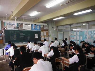 10月5日(木)2学期中間考査初日の3年生の様子です。3年生にとって2学期の考査は進路開拓にとって大変重要ですのでいつも以上に真剣な表情でテストに取り組んでいました。