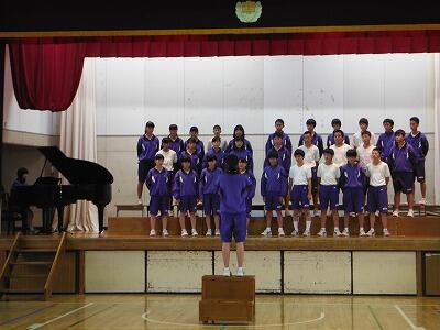 10月11日(水)6校時に2年生は体育館で合唱コンクールのリハーサルを行いました。どのクラスもよく練習してきていると感じました。お互いに聴いてきっと明日から更に練習に力が入ることでしょう。本番が楽しみです。また,学年合唱も楽しみにしていただきたいと思います。
