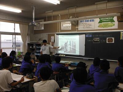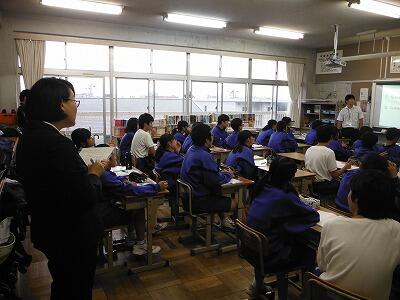 10月13日(金)5校時に岡田教諭が初任者研修として担当の教育研究所遠藤指導主事の学校訪問により2年3組で授業を展開しました。to+動詞の原形を使用し,行動の目的を述べる場面で,状況にふさわしい表現を用いて相手に伝えることができるを目標に授業が行われていました。楽しい雰囲気の中,意欲的に授業に取り組む様子が見られました。