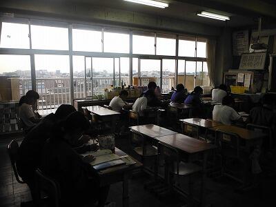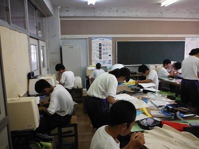 9月12日(火)1時間目は全クラスで体育祭を振り返る活動が行われていました。スライドやビデオ映像を見ながら楽しい時間を過ごしているクラスもありました。2時間目から3年生は第二回の実力テストを行っています。夏休みの成果を試す重要なテストです。他の学年は平常の授業の日課となりました。体育祭の疲れが残っている様子もありますが,2学期の学習の始まりです。授業に集中してほしいと思います。
