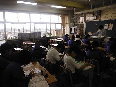 9月26日(火)1校時は全学年とも道徳の時間です。一年生は「心を磨く」というテーマで一企業人の生きざまを通して学習していました。2年生は「合唱コンクールに向けて」をテーマに合唱曲の歌詞を題材にしたり,クラスのまとまりなどについて進めていました。3年生は各クラスのテーマで「友情」や「生命の尊重」等をとりあげていました。本日は,市内中学校での研修会のため給食後に一斉下校となります。大会の近い部活動以外は放課後の活動はありません。