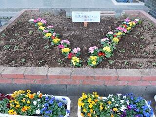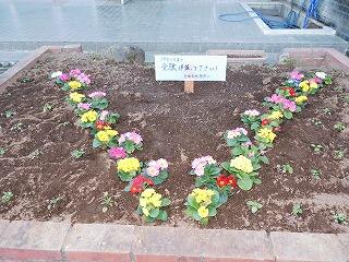 生徒会総務部が,いま受験に向けて頑張っている3年生へのメッセージを花壇に植えました。