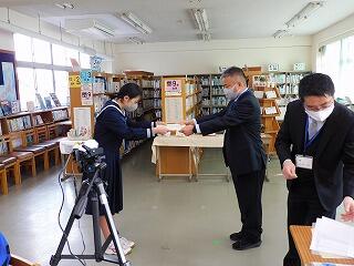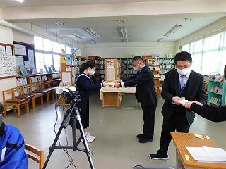 始業式に先立ち,美術や書写,作文の表彰を行い,たくさんの生徒の栄誉をたたえることができました。リモートでの表彰・始業式となりましたが,よいスタートが切れたのではないかと思います。
