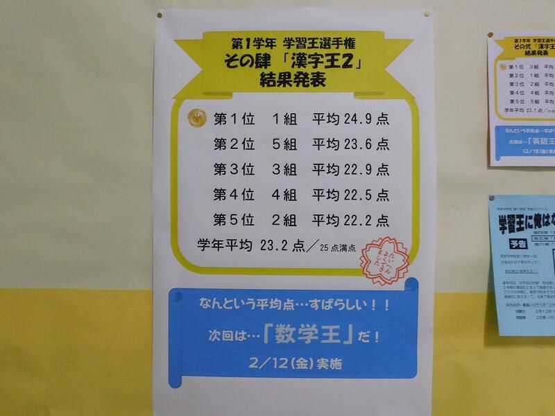 1学年で行っている「学習王選手権」の第4弾は,「漢字王2」でした。今回は,千葉県に実在する難読地名から出題しました。