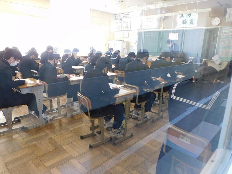 本日,3年生は中学校最後の定期テストである学年末テストを実施しています。