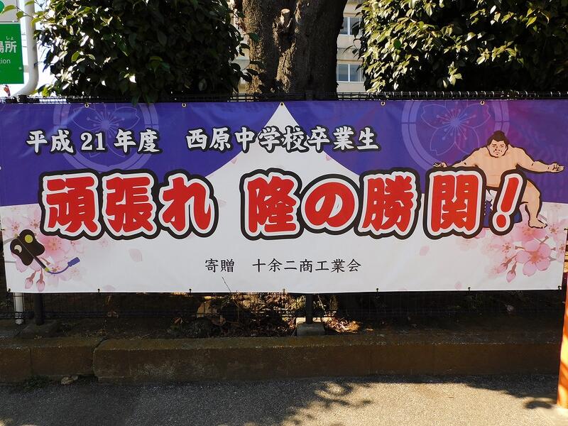 大相撲関脇 隆の勝関の横断幕を正門脇に設置しました。