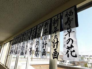 千葉県小中高校書き初め展において,優秀な成績を収めた作品を職員室前に展示しました。