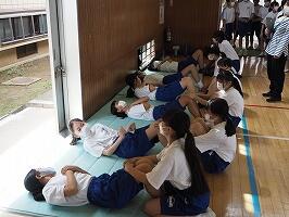本校では,震度7の地震を想定しての避難訓練とともに実施しました。1学期始めにも避難訓練を実施しており,前回よりもスムーズに避難することができました。気温が上がり,汗がにじむ中でしたが,緊張感のある雰囲気でした。