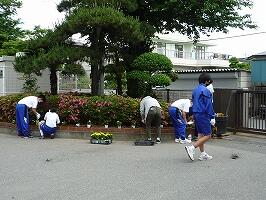 わかば学級の生徒が,正門から昇降口にかけての花壇の花の植え替え作業を行いました。