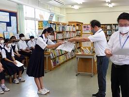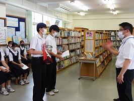 選挙活動を経て,生徒会役員に当選した7名に認証書が手渡され,新生徒会役員として今日から活動をしていきます。