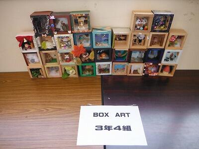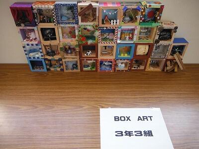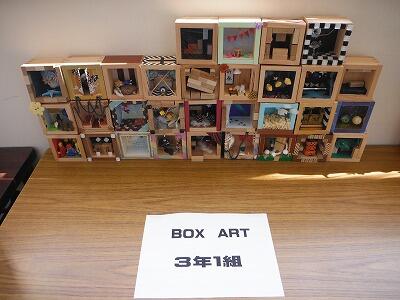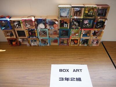 2月14日(水)職員室前に3年生の美術作品ボックスアートが展示されています。また,クラスには夢たまご(タイムカプセル)が返却されていました。この他にマグカップや扇を制作しています。卒業式当日の体育館の装飾にご注目下さい。