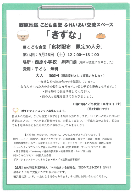 こども食堂「きずな」9月26日